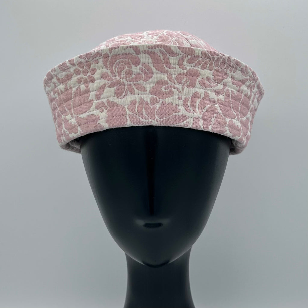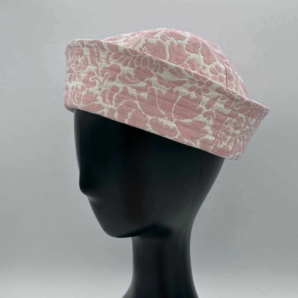 One of a kind pink and off white floral tapestry sailor hat