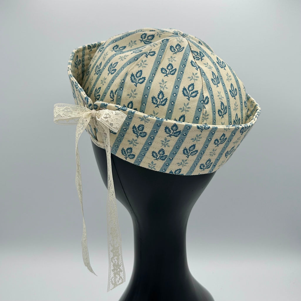 -Made to Order blue and ivory striped lace up sailor hat